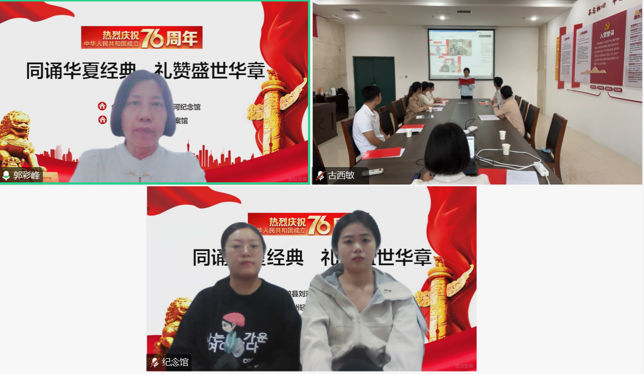 9月29日下午,档案馆直属党支部与台前县刘邓大军渡黄河纪念馆联合举办了“同诵华夏经典 礼赞盛世华章”迎国庆经典诵读线上联谊活动。台前县刘邓大军渡黄河纪念馆副馆长王阳及讲解员赵澜杰,郑州轻工业大学档案馆副馆长杨朝钦、师生讲解员共同参与活动。