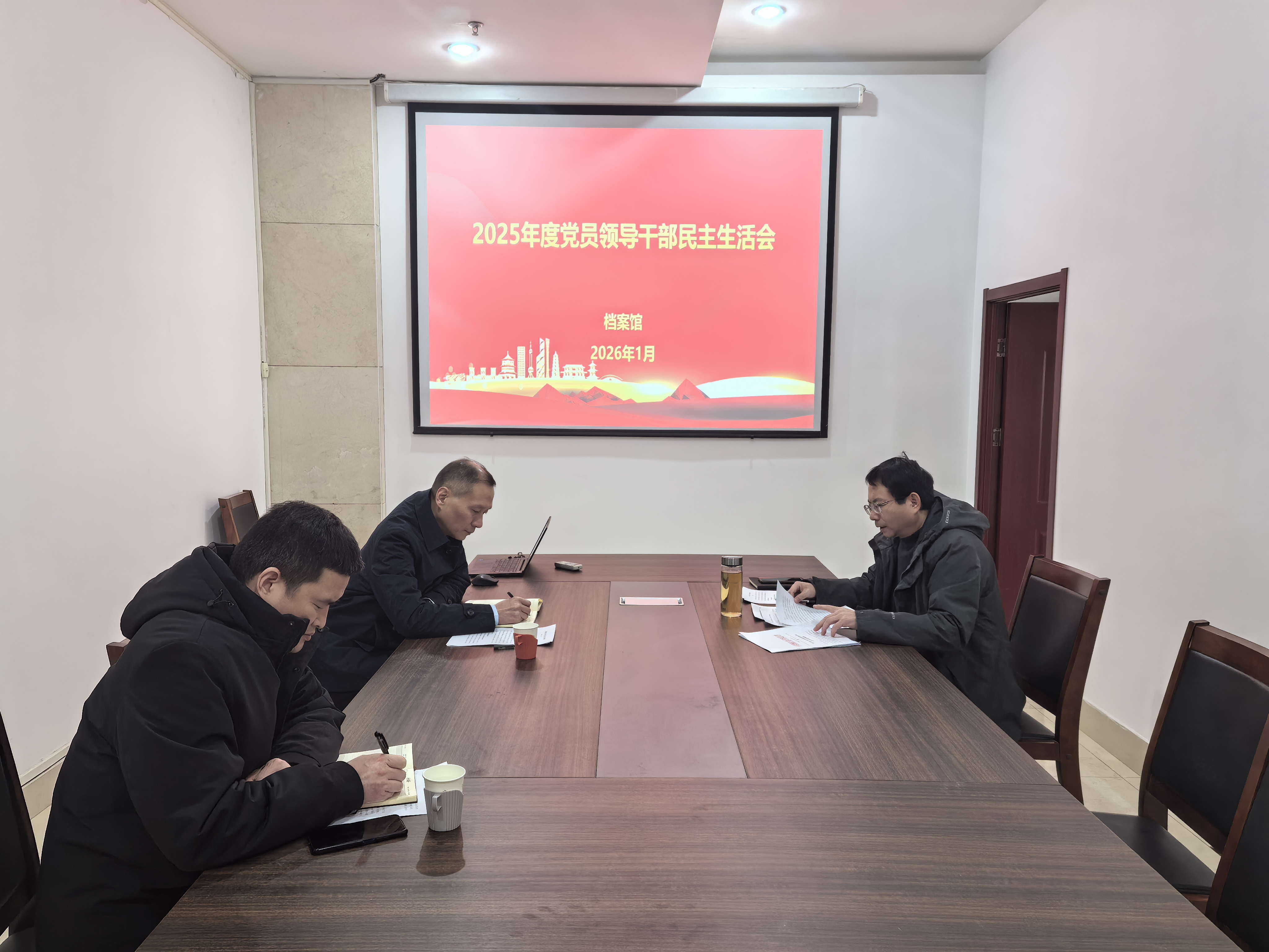 1月19日下午,档案馆直属党支部在科学校区逸夫楼档案馆130室召开2025年度党员领导干部民主生活会。直属党支部书记罗楚新主持会议。